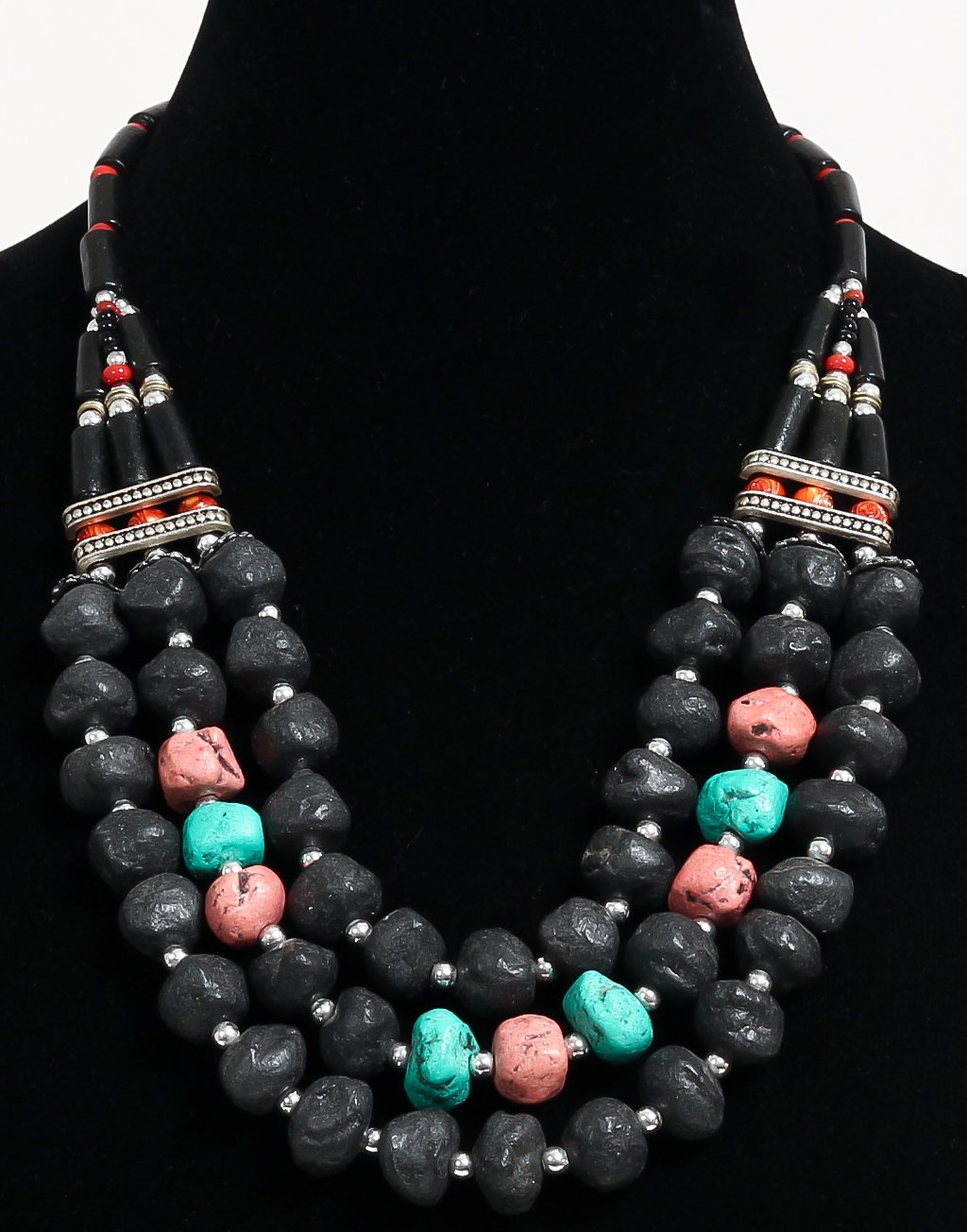 Collier ethnique artisanal avec pierres de couleur noir - REF. 29731 (28.00 €)