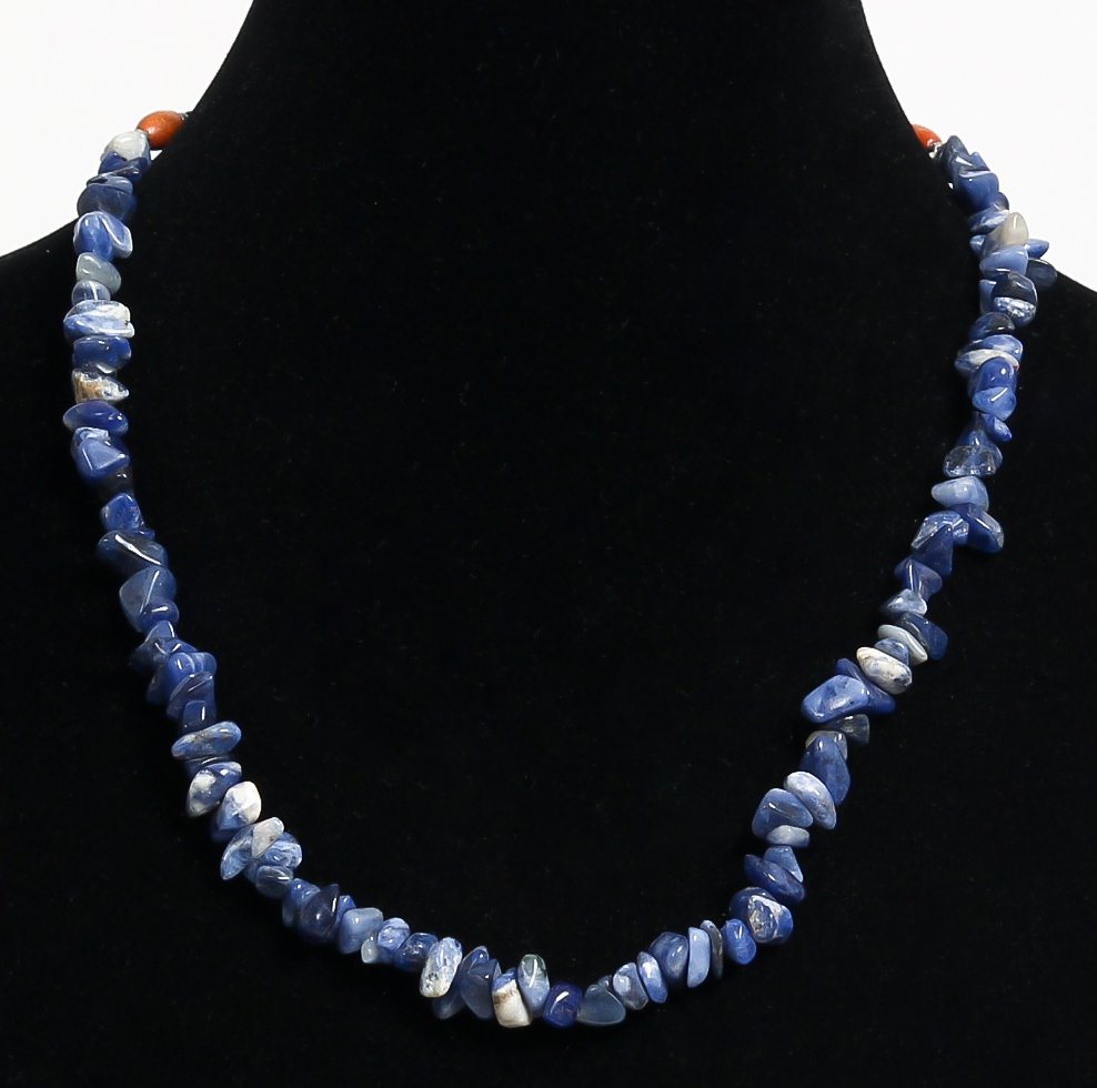 Collier ethnique artisanal imitation petites pierres bleues agrémentées de perles noires et en métal - REF. 18968 (18.00 €)