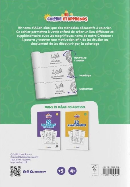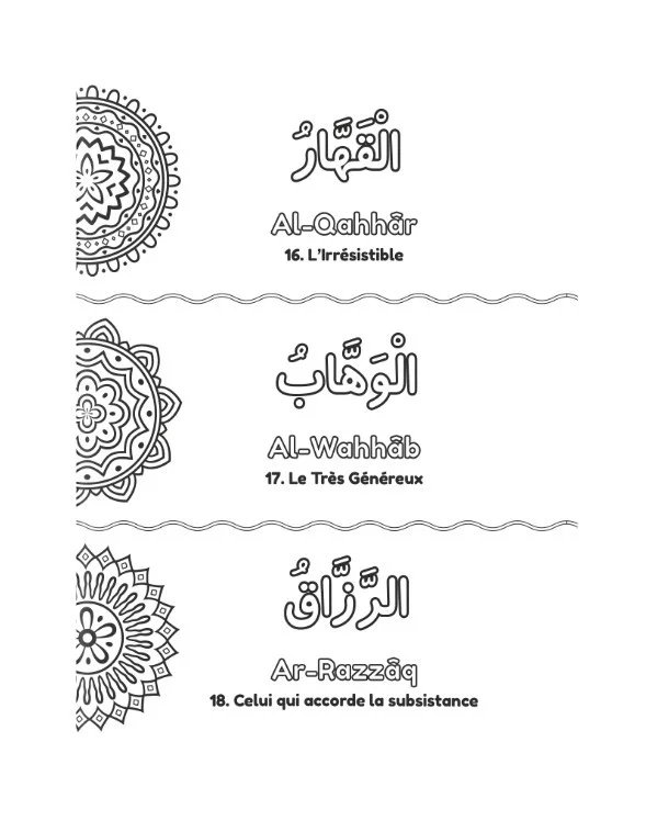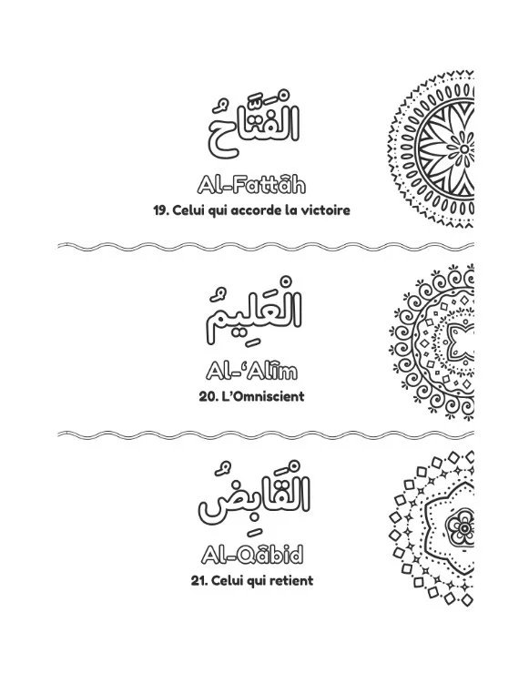 Ce cahier permettra à votre enfant de créer un lien différent et supplémentaire avec les magnifiques noms de notre Créateur. il pourra y trouver une motivation afin de les étudier ou simplement de les découvrir par le coloriage.