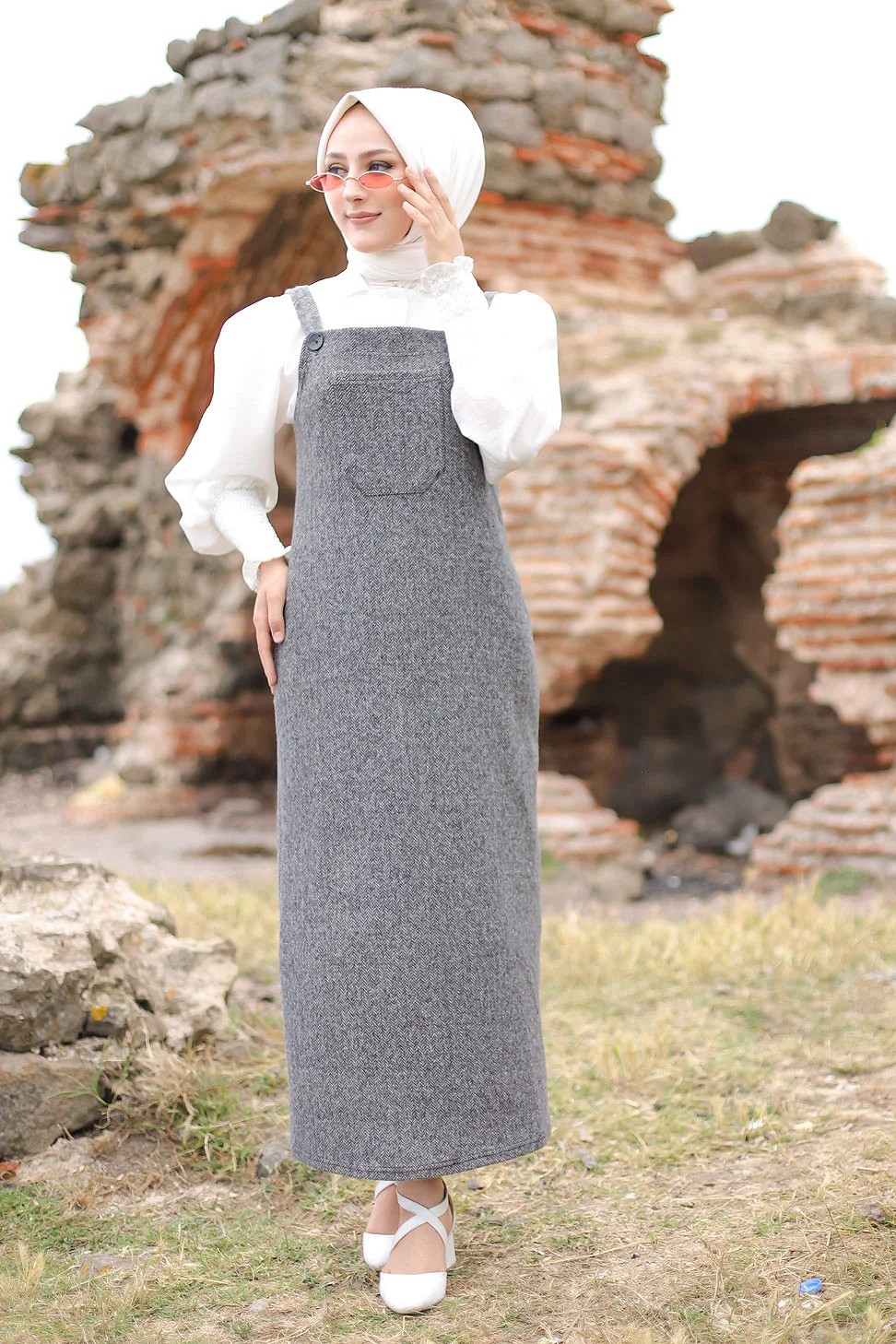 Combinaison-Salopette collection Automne-Hiver (Vetement Hijab pour femme voilee) - Couleur noir et gris