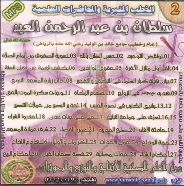 Cours de cheikh Sultan Al 'Id (N° 2) - الخطب المنبرية والمحاضرات العلمية للشيخ سلطان بن عبد الرحمن العيد CD MP3
