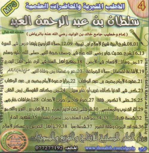 Cours de cheikh Sultan Al 'Id (N° 4) - الخطب المنبرية والمحاضرات العلمية للشيخ سلطان بن عبد الرحمن العيد CD MP3