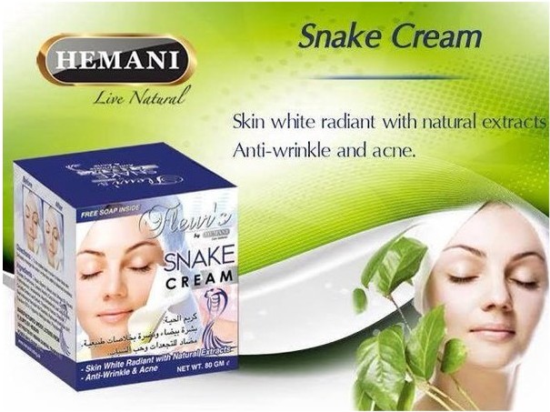 La crème aux extraits naturels de serpent de la marque Hemani Fleur's permet d'avoir un visage sans points noirs et sans acné. Cette crème a des actifs qui permettent d'avoir un visage radieux après l'élimination des imperfections. Crème efficace contre les taches et les pores dilatés. La crème s'utilise sur les peaux grasses et acnéiques.