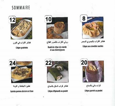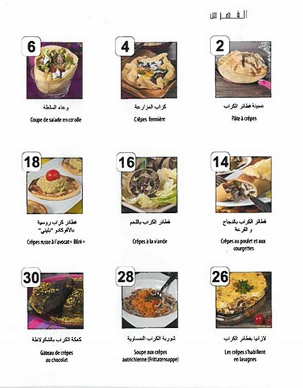 Livre de cuisine avec 15 recettes en photos faciles à préparer. Chaque recette est illustrée par des photos et expliquée en français et en arabe étape par étape.