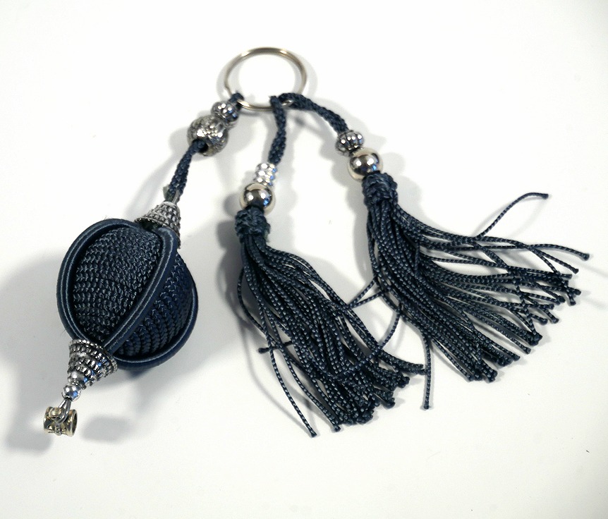 Pendentif / Porte-clés tout en sobriété, fait à la main par un artisan. Il arbore des pompons et une couleur gris argent. Idéal pour regrouper clé de la maison, clé de la voiture, clé de coffre-fort et autres clés importantes qui peuvent vite vous mettre dans une situation embarrassante si vous n'arrivez plus à les retrouver.