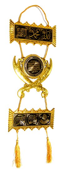 Le premier cadre porte les inscriptions Allah (Jalla Jalaoulouh), Muhammad (SAW) ainsi que la chahada (l'attestation de foi musulmane).