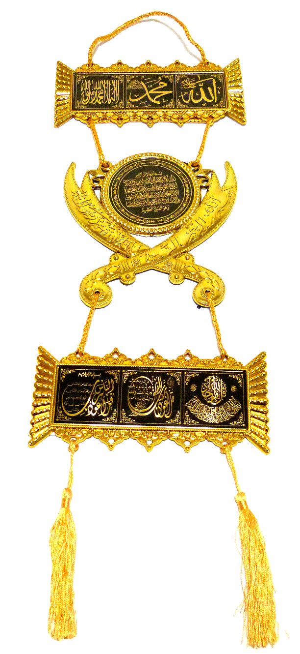 Décoration islamique sous forme de trois cadres dorés suspendus :