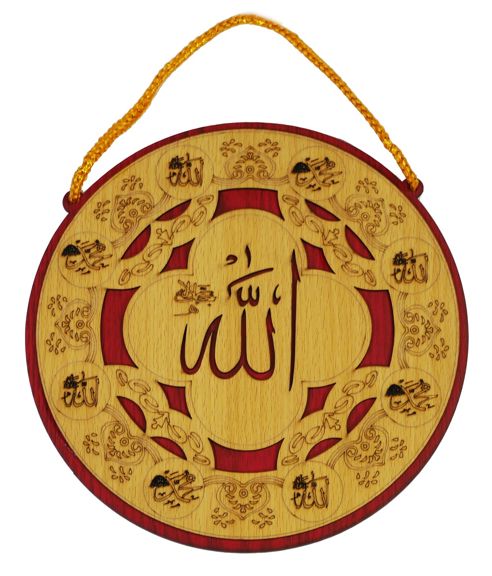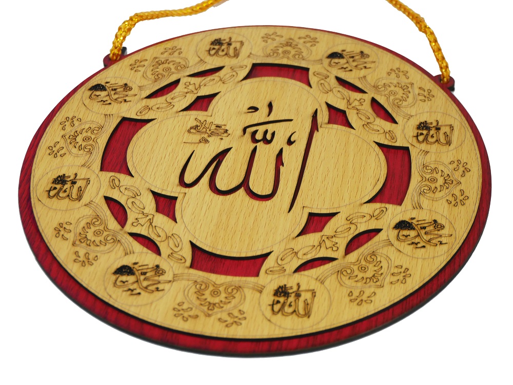 Tableau pendentif en bois avec le nom d'Allah gravé en calligraphie