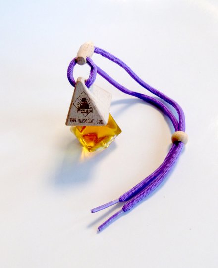 Joli flacon en verre avec bouchon bois pour diffuser le parfum de façon harmonieuse, à suspendre dans la voiture (au rétroviseur par exemple). Peut être utilisé également dans une armoire ou tout autre endroit à parfumer.