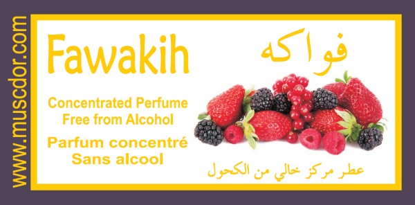 Un agréable parfum se dégagera du bouchon en bois. Parfum concentré sans alcool Musc d'Or "Fawakih" (6 ml) - Parfum mixte (femmes et hommes). Le mot arabe fawâkih (فواكه) signifie fruits.