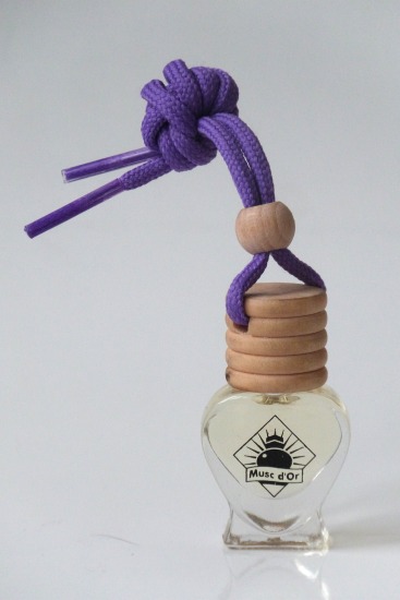 Joli flacon en verre sous forme de coeur avec bouchon bois pour diffuser le parfum de façon harmonieuse, à suspendre dans la voiture (au rétroviseur par exemple). Peut être utilisé également dans une armoire ou tout autre endroit à parfumer.