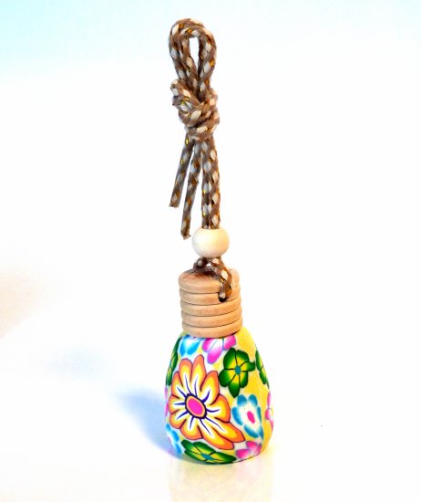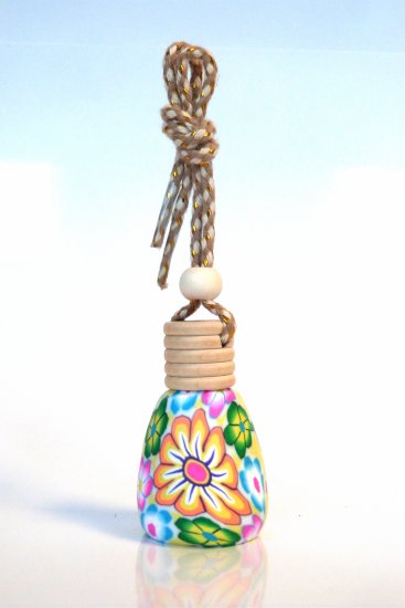Joli flacon en verre avec bouchon bois pour diffuser le parfum de façon harmonieuse, à suspendre dans la voiture (au rétroviseur par exemple). Peut être utilisé également dans une armoire ou tout autre endroit à parfumer.