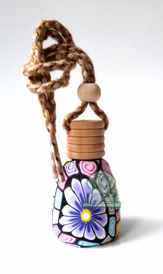 Joli flacon en verre avec bouchon bois pour diffuser le parfum de façon harmonieuse, à suspendre dans la voiture (au rétroviseur par exemple). Peut être utilisé également dans une armoire ou tout autre endroit à parfumer.