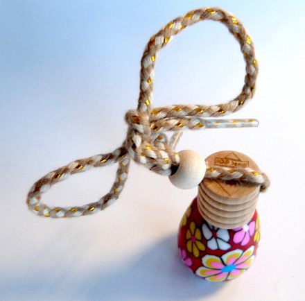 Joli flacon en verre avec bouchon bois pour diffuser le parfum de façon harmonieuse, à suspendre dans la voiture (au rétroviseur par exemple). Peut être utilisé également dans une armoire ou tout autre endroit à parfumer.
