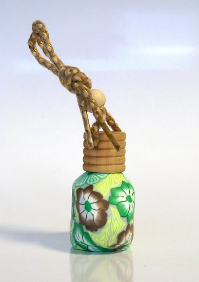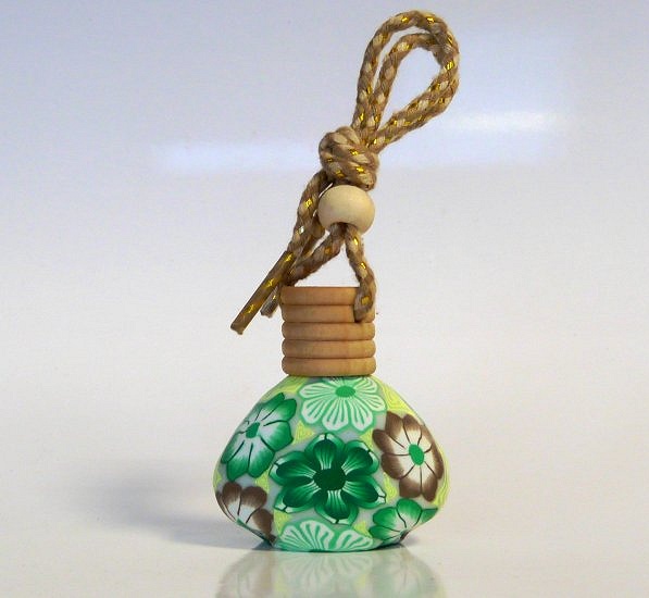 Joli flacon en verre avec bouchon bois pour diffuser le parfum de façon harmonieuse, à suspendre dans la voiture (au rétroviseur par exemple). Peut être utilisé également dans une armoire ou tout autre endroit à parfumer.