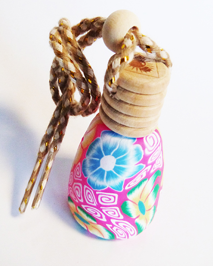 Joli flacon en verre avec bouchon bois pour diffuser le parfum de façon harmonieuse, à suspendre dans la voiture (au rétroviseur par exemple). Peut être utilisé également dans une armoire ou tout autre endroit à parfumer.