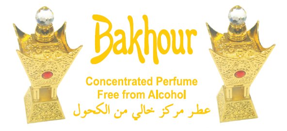Parfum concentré sans alcool Musc d'Or "Bakhour". Le mot arabe Bakhûr (بخور) signifie encens.