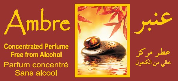 Parfum concentré sans alcool Musc d'Or "Ambre". En arabe l'ambre se dit Anbar (عنبر).
