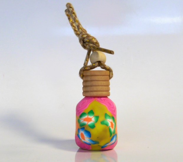 Joli flacon en verre avec bouchon bois pour diffuser le parfum de façon harmonieuse, à suspendre dans la voiture (au rétroviseur par exemple). Peut être utilisé également dans une armoire ou tout autre endroit à parfumer.