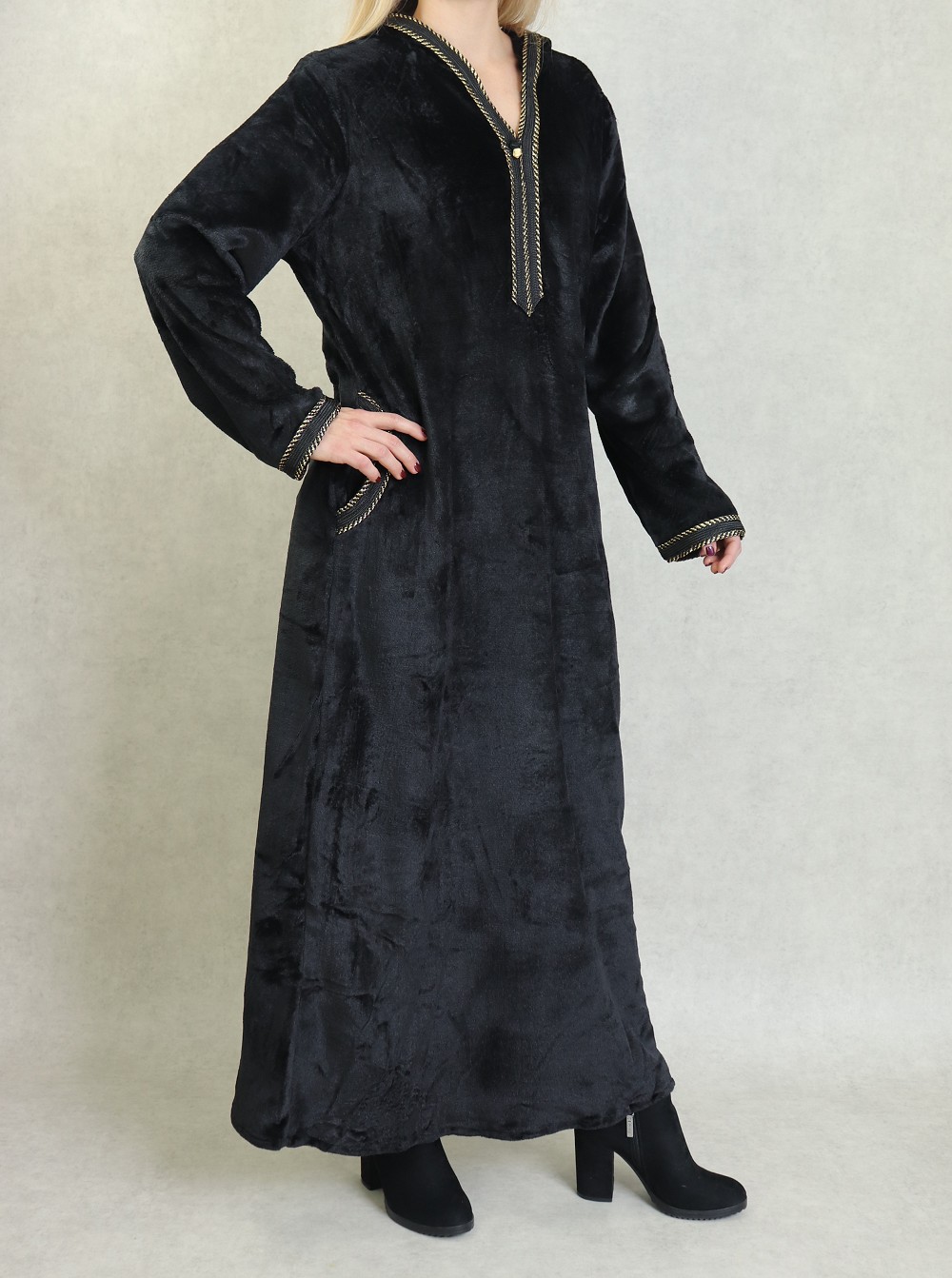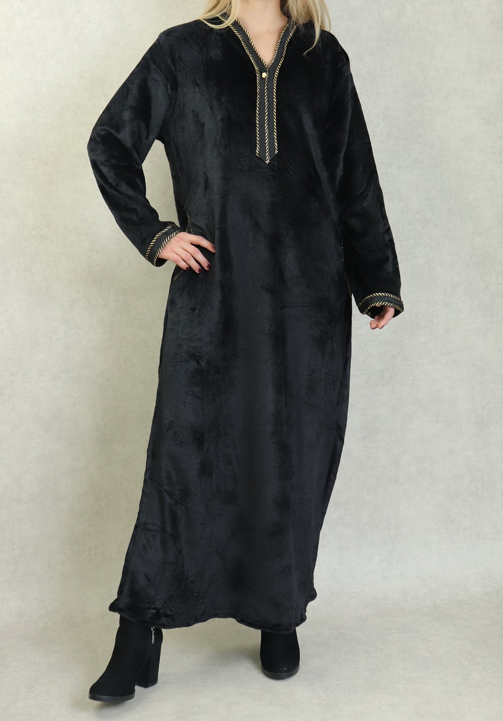 Djellaba maille polaire à capuche pour femme (Saison Automne-Hiver) - Couleur Noir Vetement & Accessoire