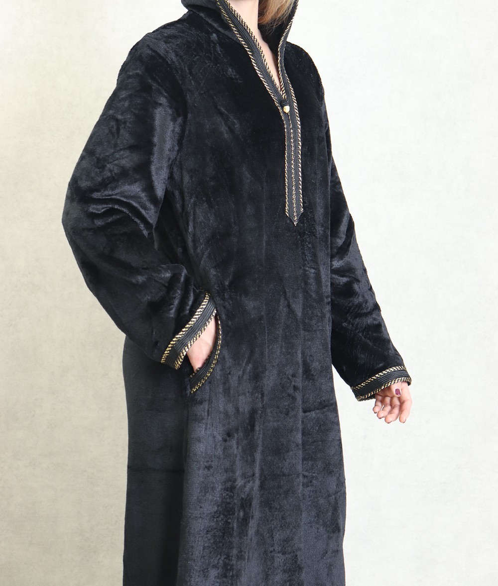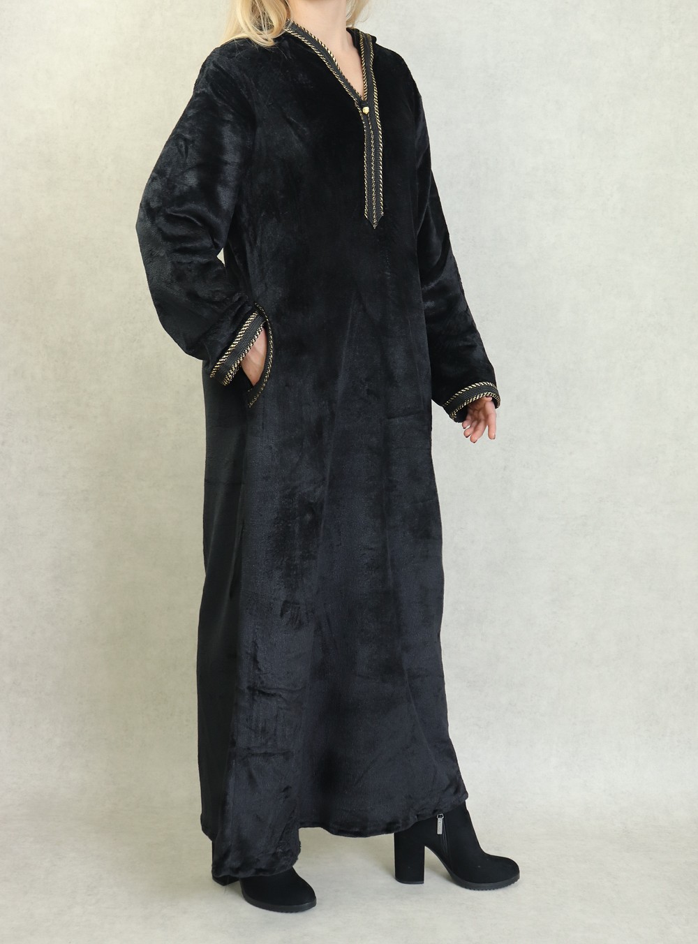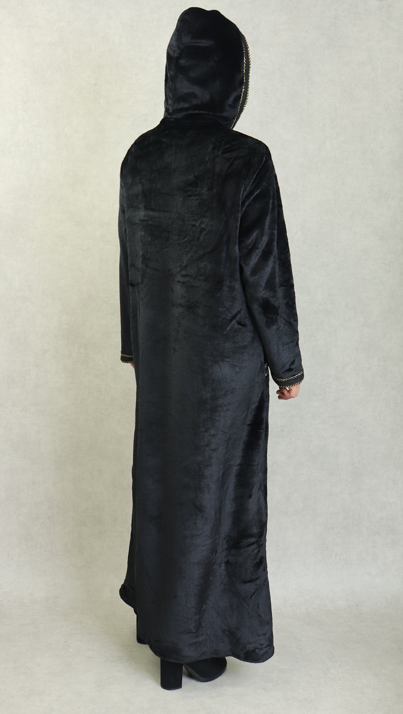 Djellaba maille polaire a capuche pour femme (Saison Automne-Hiver) - Couleur Noir