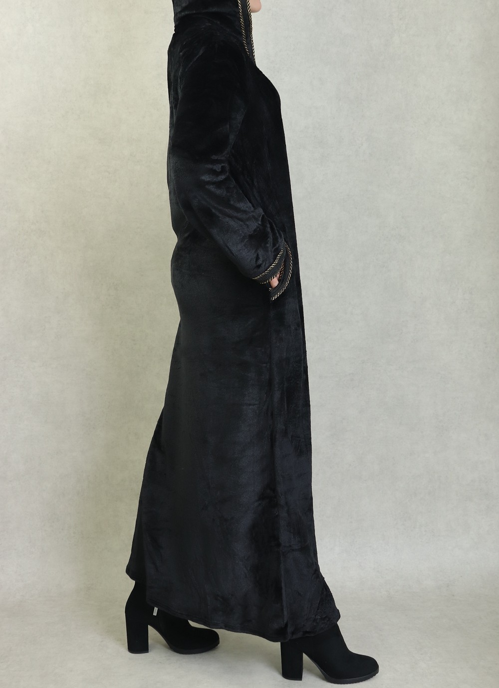 Robe Djellaba longue avec capuche pour femme (Automne Hiver) - Couleur Noir