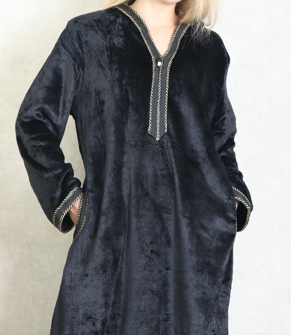 Robe orientale tunisienne manches longues effet velours avec broderies et perles pour femme (Automne Hiver) - Couleur Noir - REF. 34056 (28.00 €)