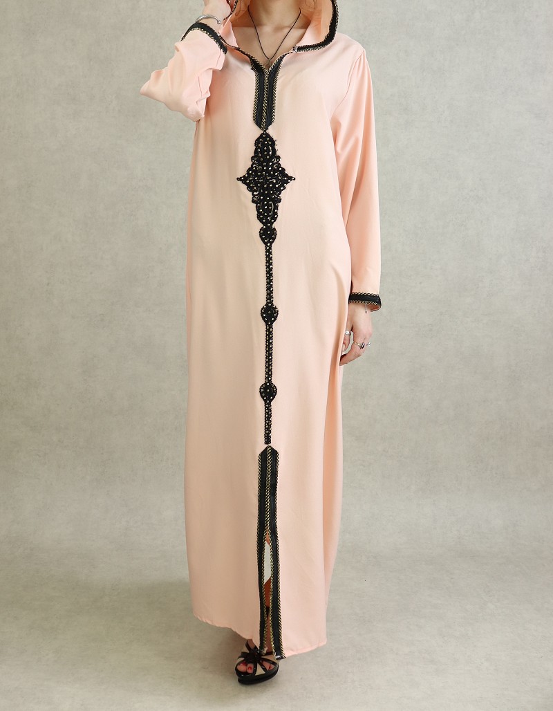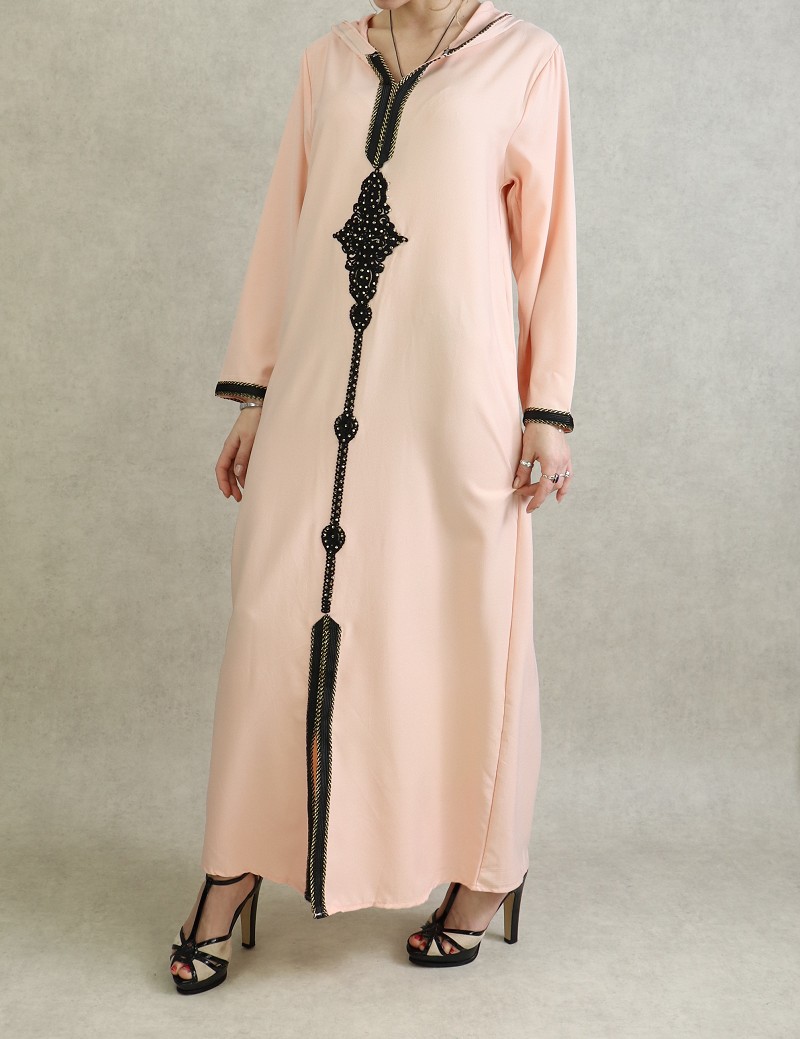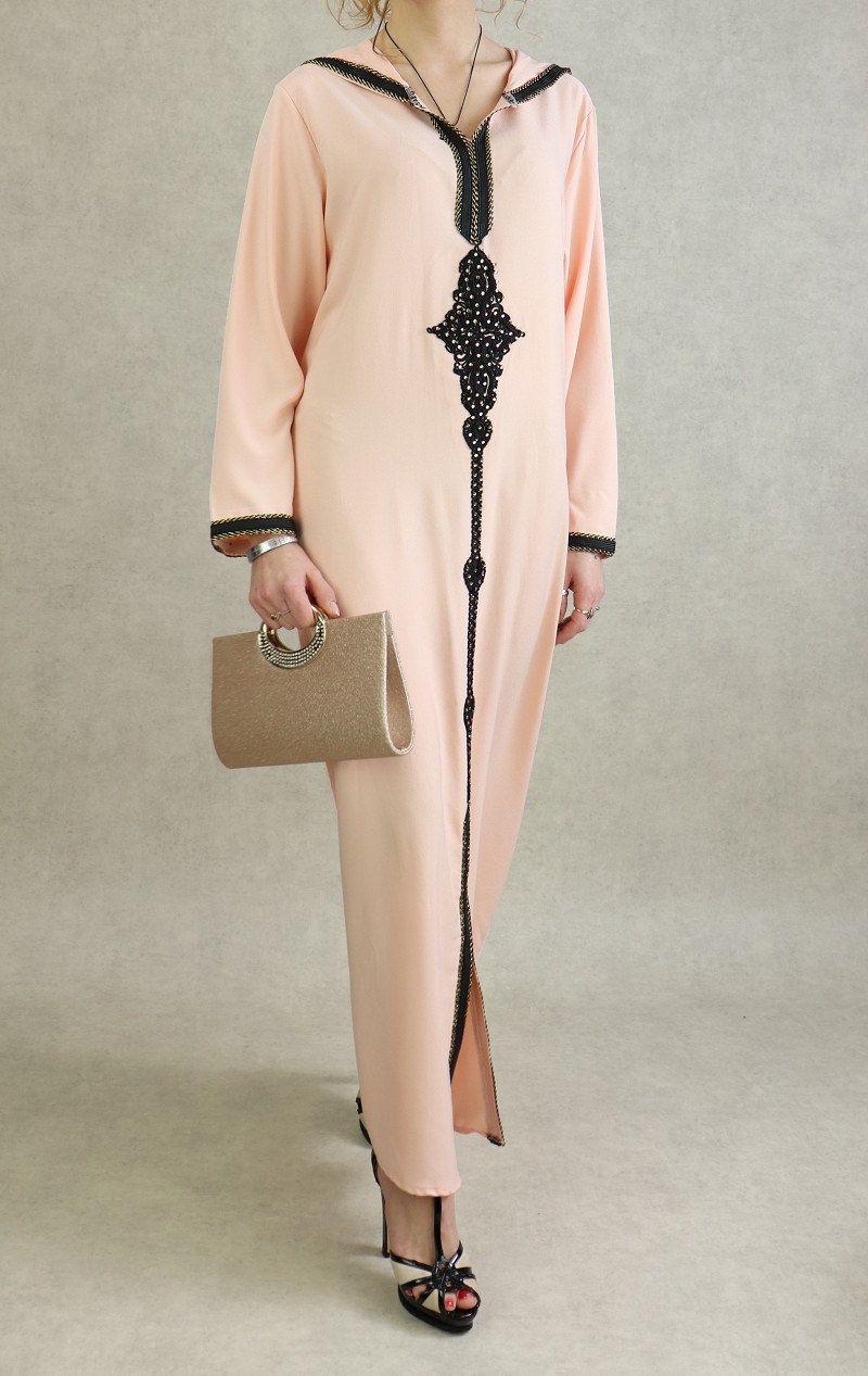 Djellaba marocaine à capuche brodée et décorée de strass - Couleur Saumon Vetement & Accessoire