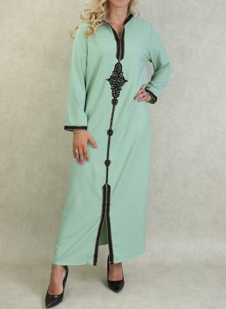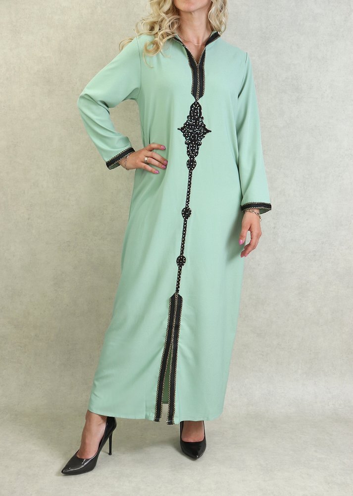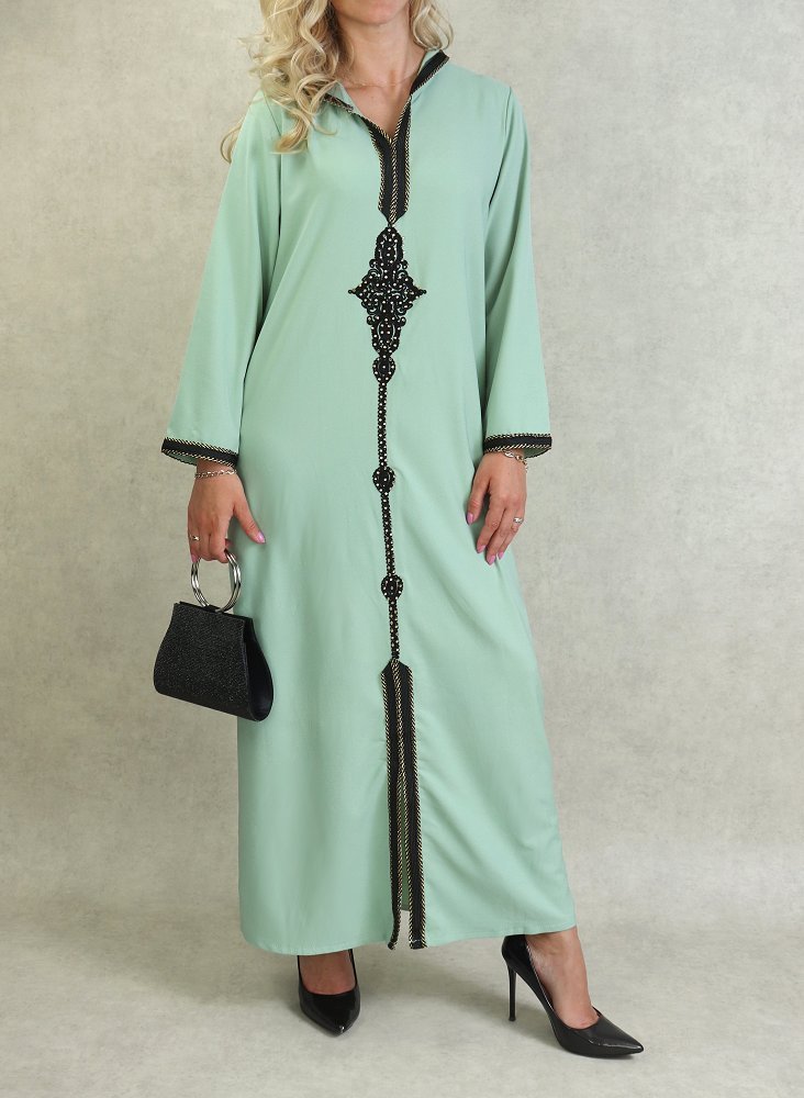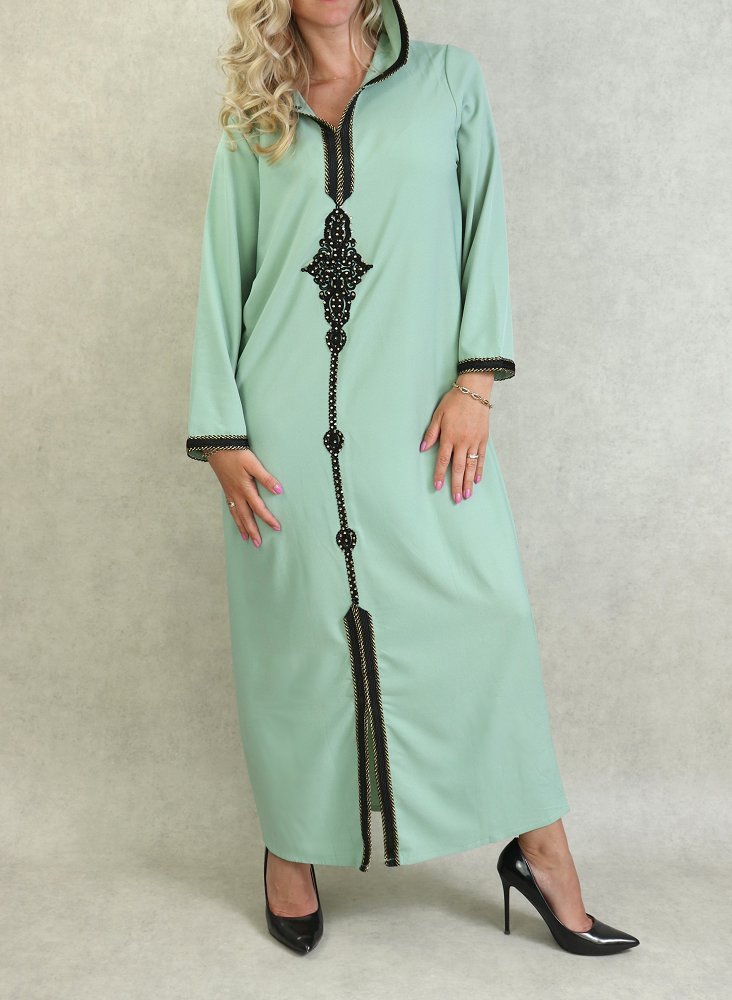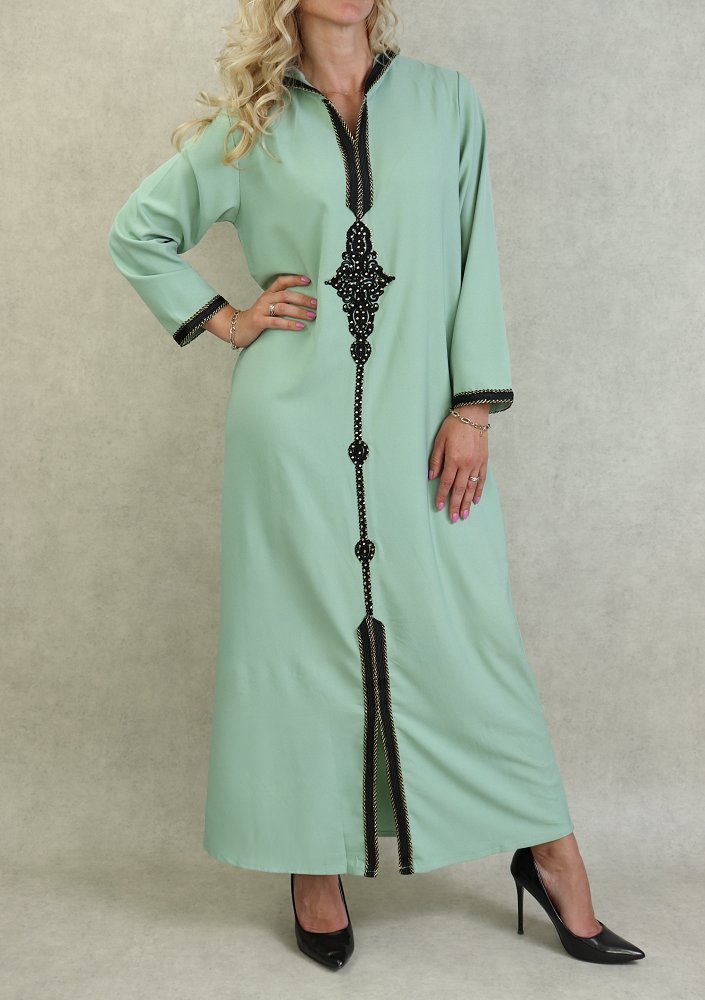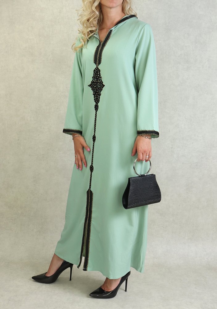 Djellaba marocaine à capuche brodée et décorée de strass - Couleur Vert clair Vetement & Accessoire