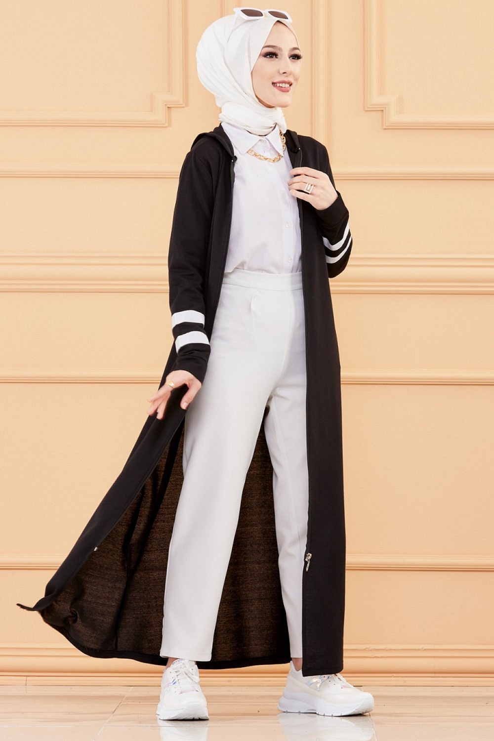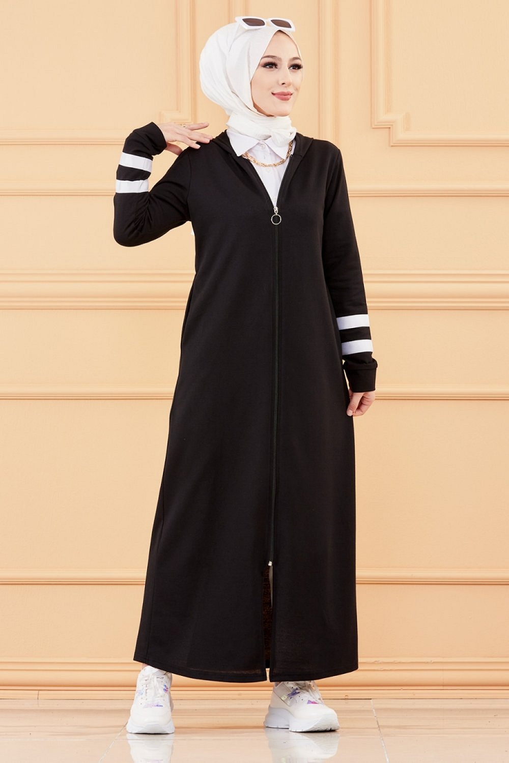 Robe moderne style décontracté (Vêtement moderne femme musulmane) - Couleur noir et blanc - REF. 36263 (29.90 €)