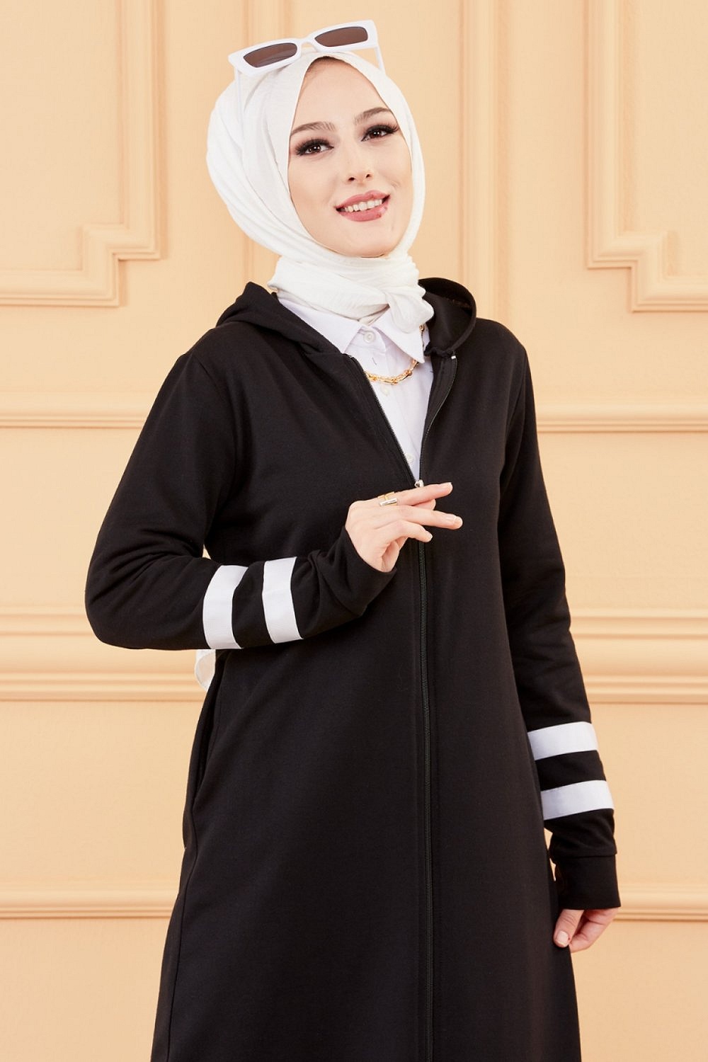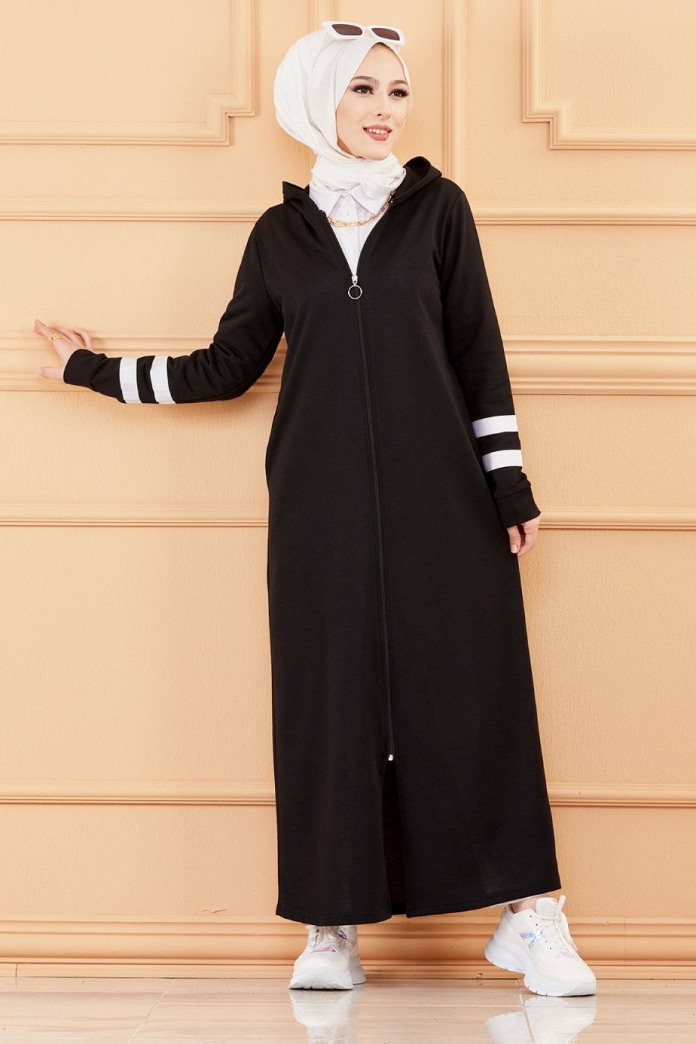 Tunique à capuche zippée type Sportswear (Tendance Mode Musulmane Sport) - Couleur kaki - REF. 32512 (19.90 €) - En Promotion à 16.90 €