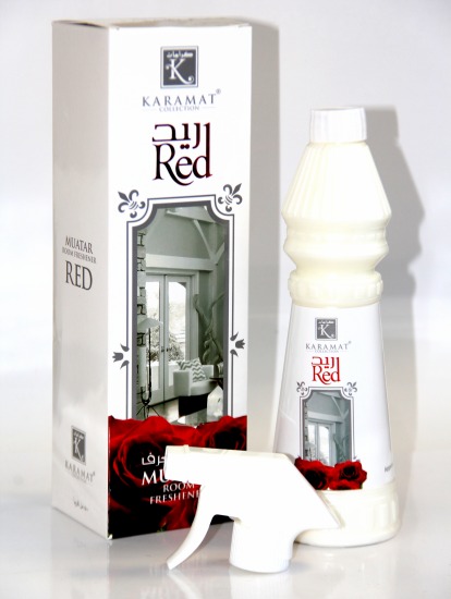 Eau parfumée désodorisante KARAMAT "RED" - Pour literies, salons, rideaux, vêtements, voitures, etc. Fini les mauvaises odeurs. Bien agiter avant utilisation.