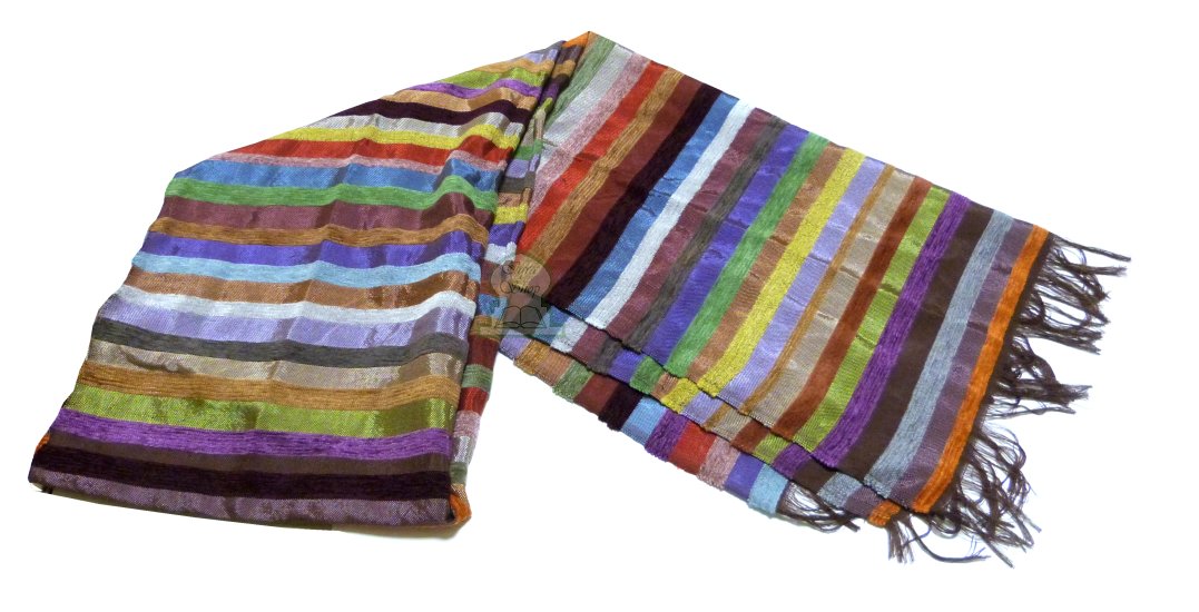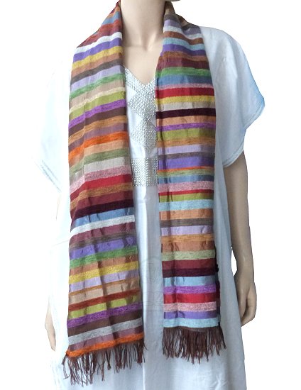 Grande écharpe multicolore en soie végétale ou sabra, fibre issue de la feuille de l’Aloès tissée à la main par les artisans de Marrakech. Cette écharpe nous rappelle les couleurs de l'arc en ciel.