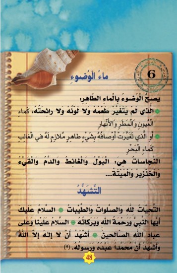Livre de l'école de La Madrassah de Sheikh Ayoub. Dans le cadre du programme élaboré à La Madrassah, ce manuel est destiné aux élèves de troisième année (9 ans et plus) qui savent déjà lire et écrire l'arabe.