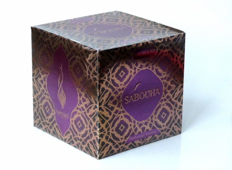 Bakhour (encens) "Sabouha" pour parfumer son intérieur aux senteurs orientales, présenté dans un emballage joliment décoré et fourni avec une cuillère de dosage.