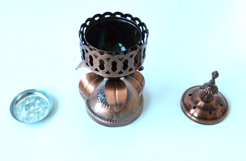 Le récipient métallique qui se place en haut de l'encensoir permet de vider facilement les restes de cendres après usage et d'y poser votre encens pour le brûler en toute sécurité.