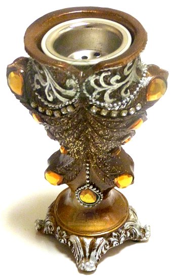 Encensoir / brûleur d'encens métallique dorée et décoré de gros diamants - REF. 23422 (14.00 €)