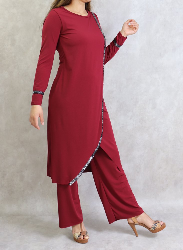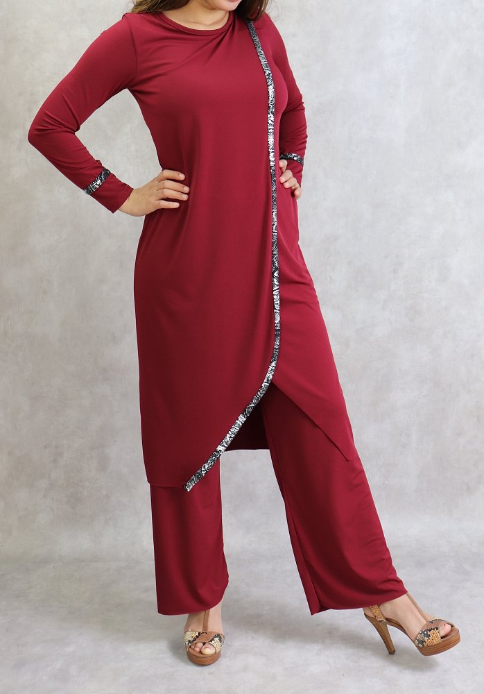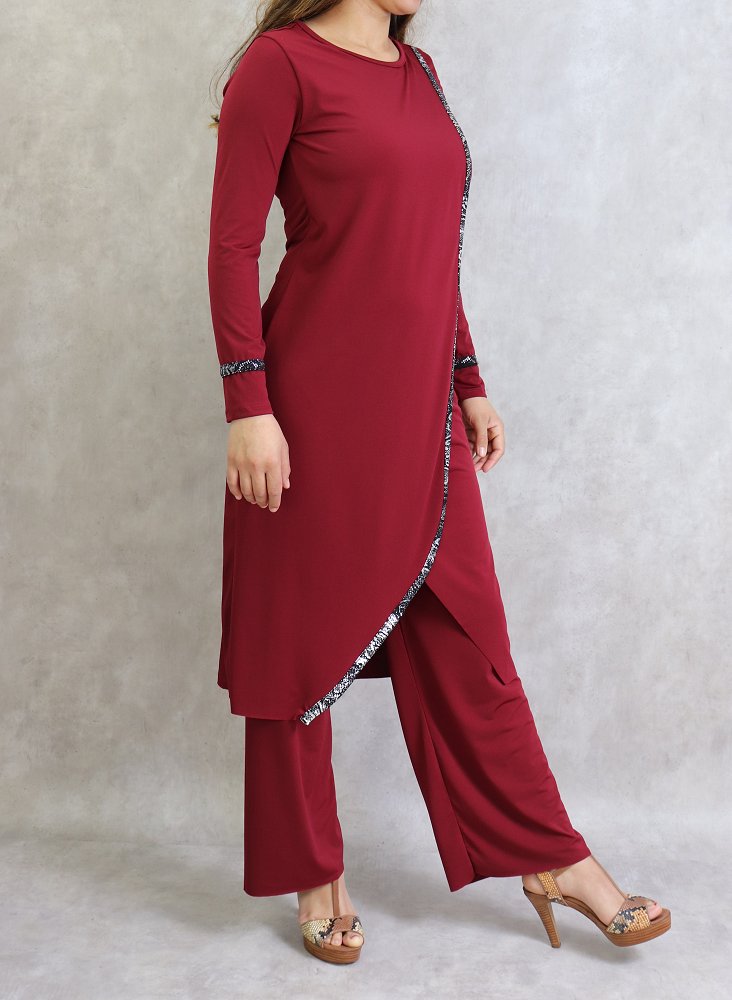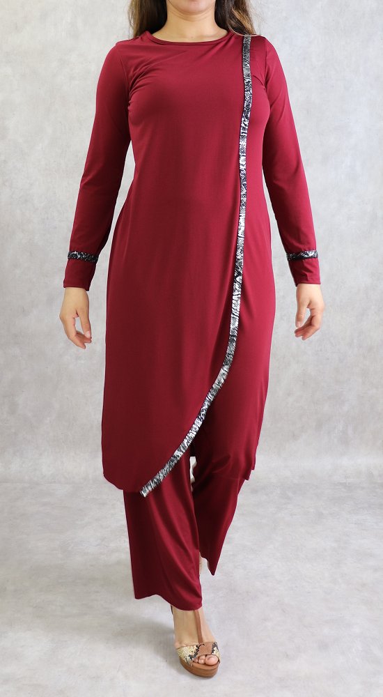 Ensemble 2 pieces effet portefeuille - Couleur Bordeaux