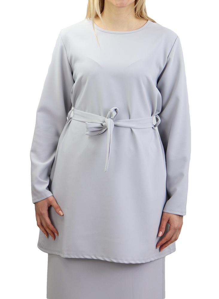 Très bel ensemble sobre et élégant constitué d'une jupe droite casual qui s'adapte à tous les styles. Longueur 100 cm, taille élastique. Longueur de la tunique 83 cm avec sa ceinture assortie. Peut être porté avec tous types de chaussures (tennis, bottines, escarpins...)