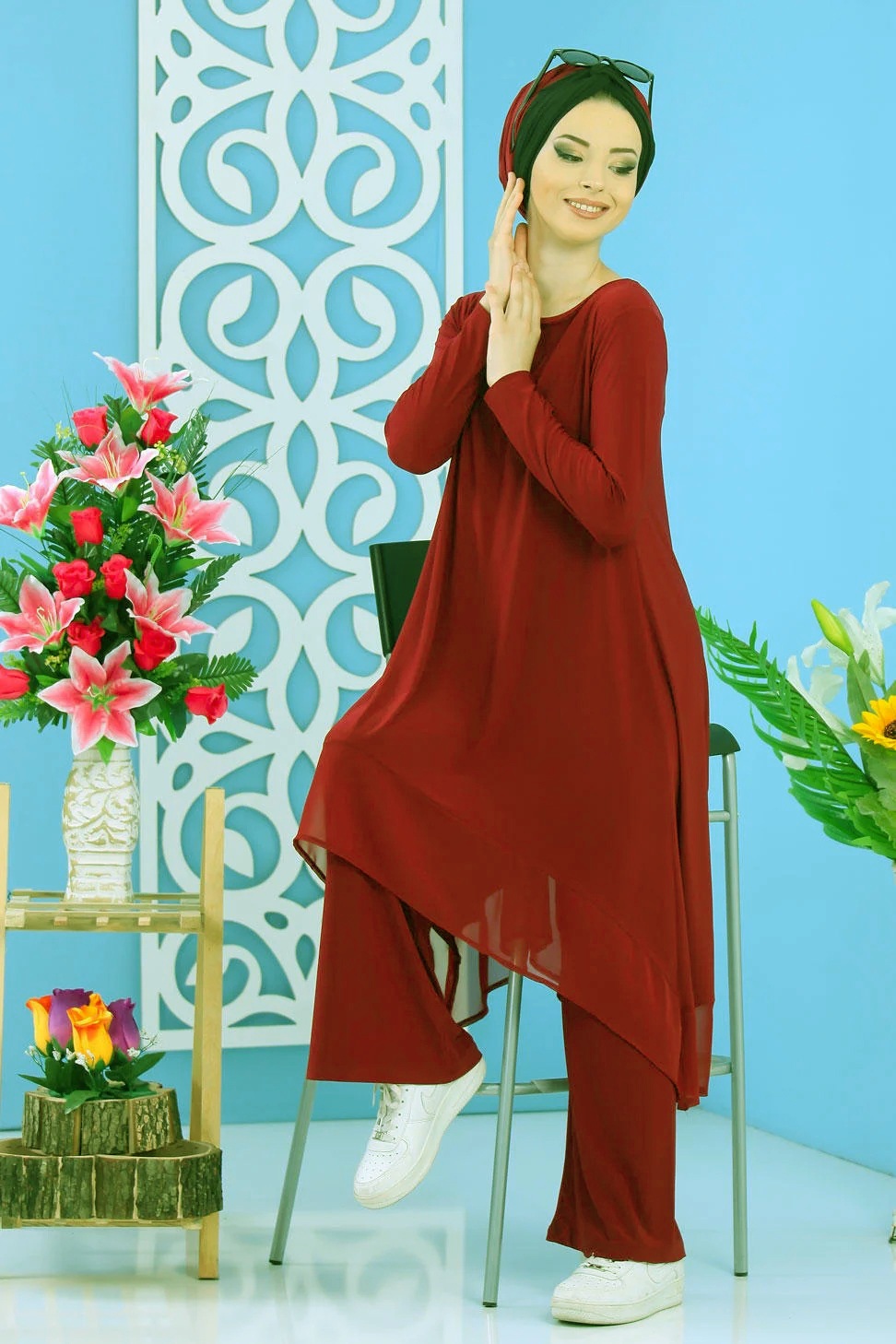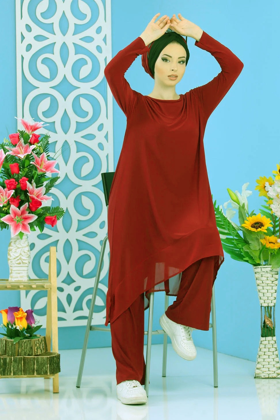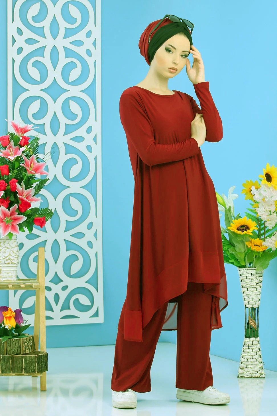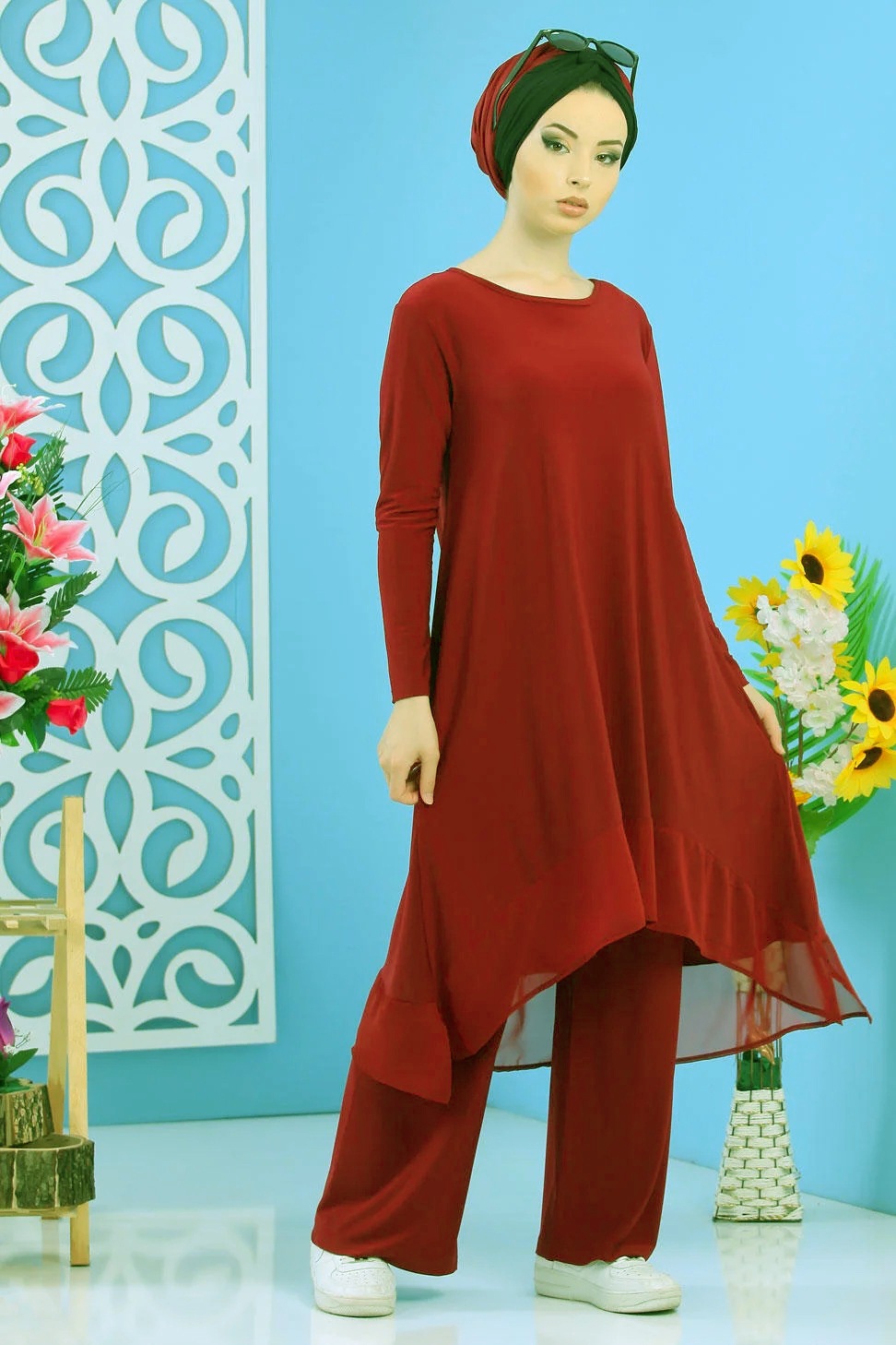 Ensemble Deux Pièces Tunique et Pantalon - Style chic et moderne pour femme - Couleur Rouille Vetement & Accessoire