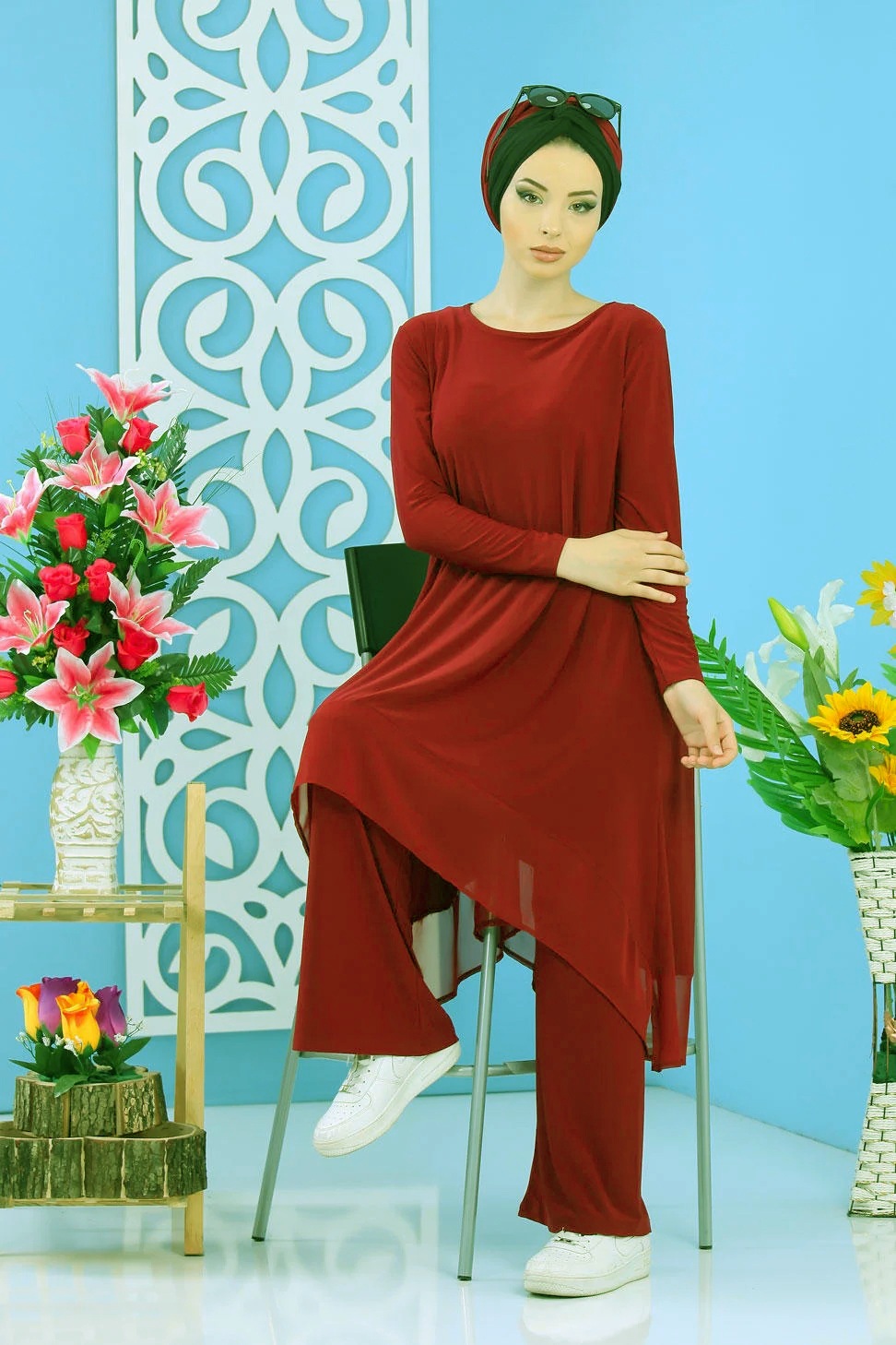 Ensemble casual tunique à capuche et pantalon (Modest Fashion) - Couleur beige et brique - REF. 33893 (35.00 €)