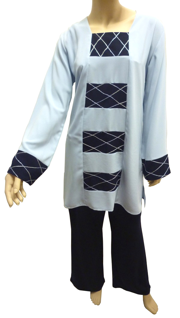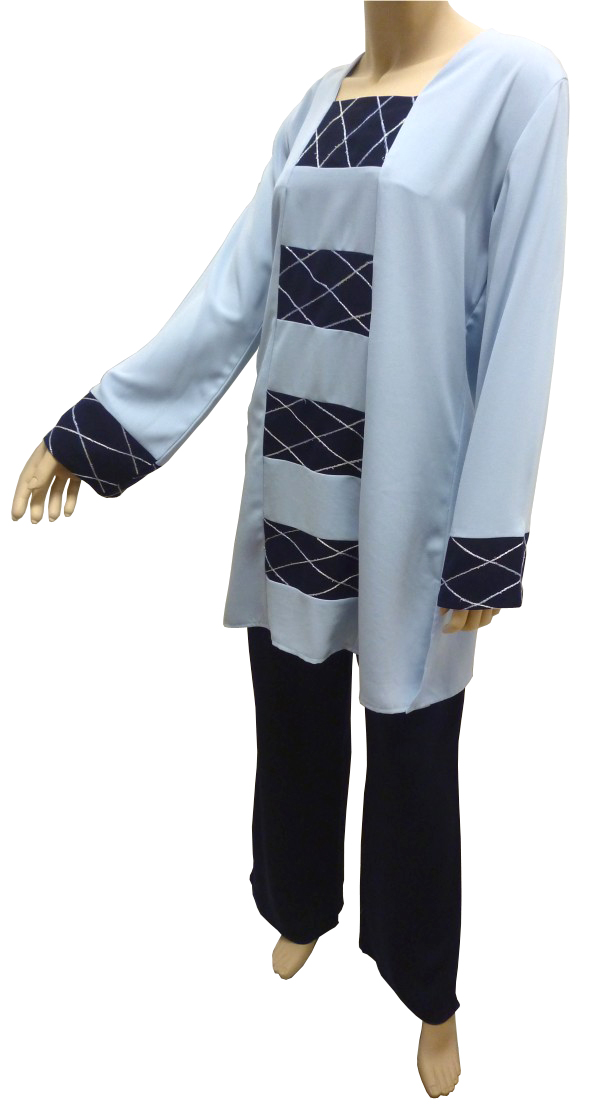 Ensemble "Fatiha" en lin composé d'une d'une tunique bleu ciel et son pantalon assorti bleu nuit.