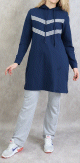 Ensemble survêtement islamique à capuche et bandes blanches pour femme voilée - Couleur bleu marine - REF. 32536 (28.00 €) - En Promotion à 20.90 €
