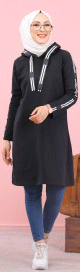 Sweat long avec capuche style moderne décontracté et sport (Vetement femme voilée) - Couleur Noir - REF. 32240 (19.90 €) - En Promotion à 16.90 €