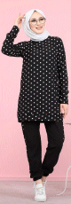 Ensemble deux pièces pour femme de couleur noir à pois (Tenue Hijab Modest Fashion) - REF. 32314 (29.90 €) - En Promotion à 24.90 €