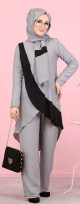 Ensemble ample 3 pièces : tunique - pantalon et voile assorti (Vetement pour femme voilée) - Couleur Gris - REF. 32321 (39.90 €)