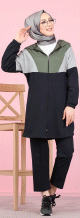 Ensemble décontracté tricolore à capuche pour femme musulmane (Survêtement Hijab Sport - Grande taille disponible) - Couleur noir, gris et kaki - REF. 32750 (29.90 €) - En Promotion à 21.90 €