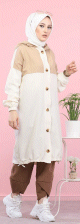 Veste longue bicolore à capuche (Mode islamique) - Couleur blanc et Beige - REF. 32778 (29.90 €) - En Promotion à 24.90 €