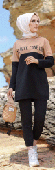 Survêtement hijab sport à capuche pour femme musulmane - Ensemble 2 pièces (Ootd) - Couleur noir et Beige - REF. 32818 (25.00 €)