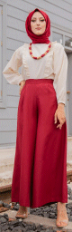 Ensemble casual : Palazzo ample et Blouse avec collier assorti pour femme (Ensembles Hijab Turque) - Couleur crème et Bordeaux - REF. 32867 (19.90 €)